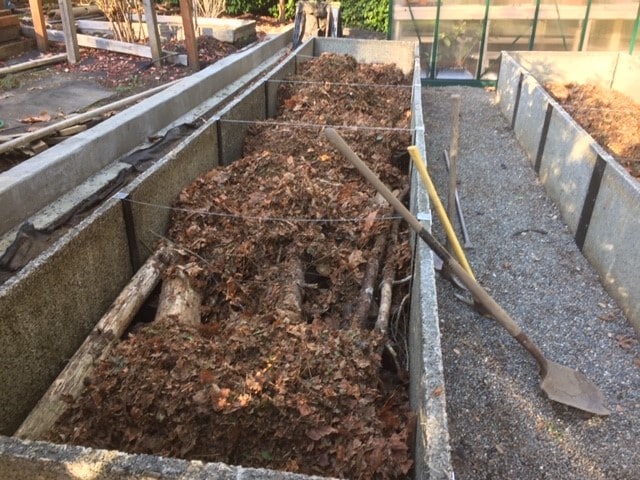 When you’re creating hugelculture soil in a raised bed, here’s what you do. Line the bottom of your two-foot-deep Durable GreenBed raised bed with logs (we recommend 1 inches to 5 inches in diameter), or split wood, whatever you have. Definitely use any piles of wood that have been laying around that is starting to decay or get punky (soft, rotted, covered with fungi). Gathering debris from wooded areas is great. On top of the layer of logs, pile up a layer of leaves and / or wood chips. This fills in the space between the larger wood.